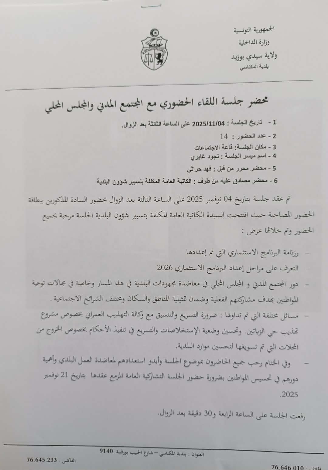 جلسة البرنامج الإستثمار البلدي لسنة 2022
